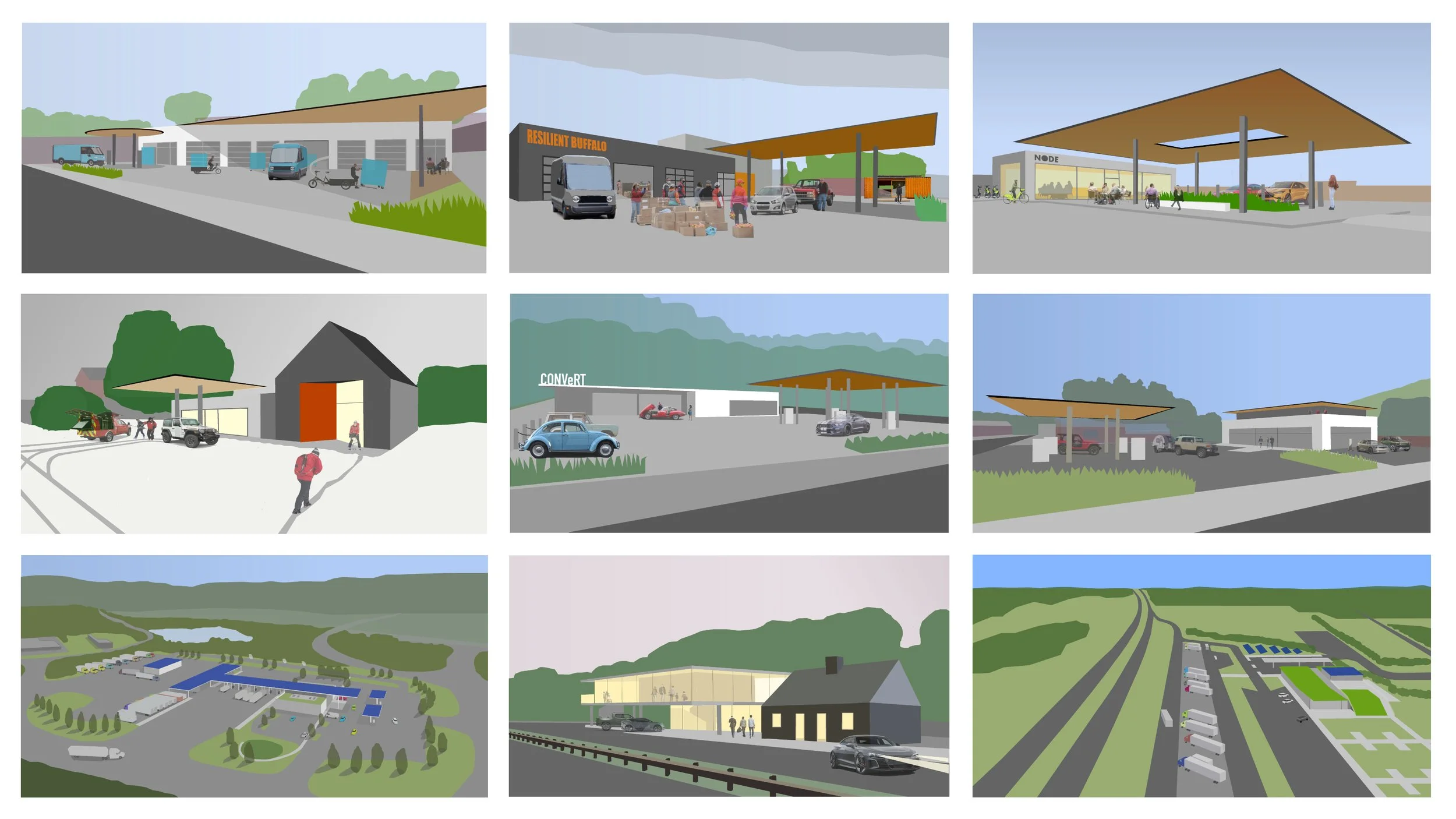 The Future Station Project reimagines gas stations in the transition to electric vehicles and alternative modes of transit. This provides an opportunity for the adaptive reuse of stations as mobility hubs, resilience hubs, micro freight hubs, and other uses through 9 prototypes of urban, rural, and highway stations. A short film and this website were developed to share ideas widely with communities and planners.