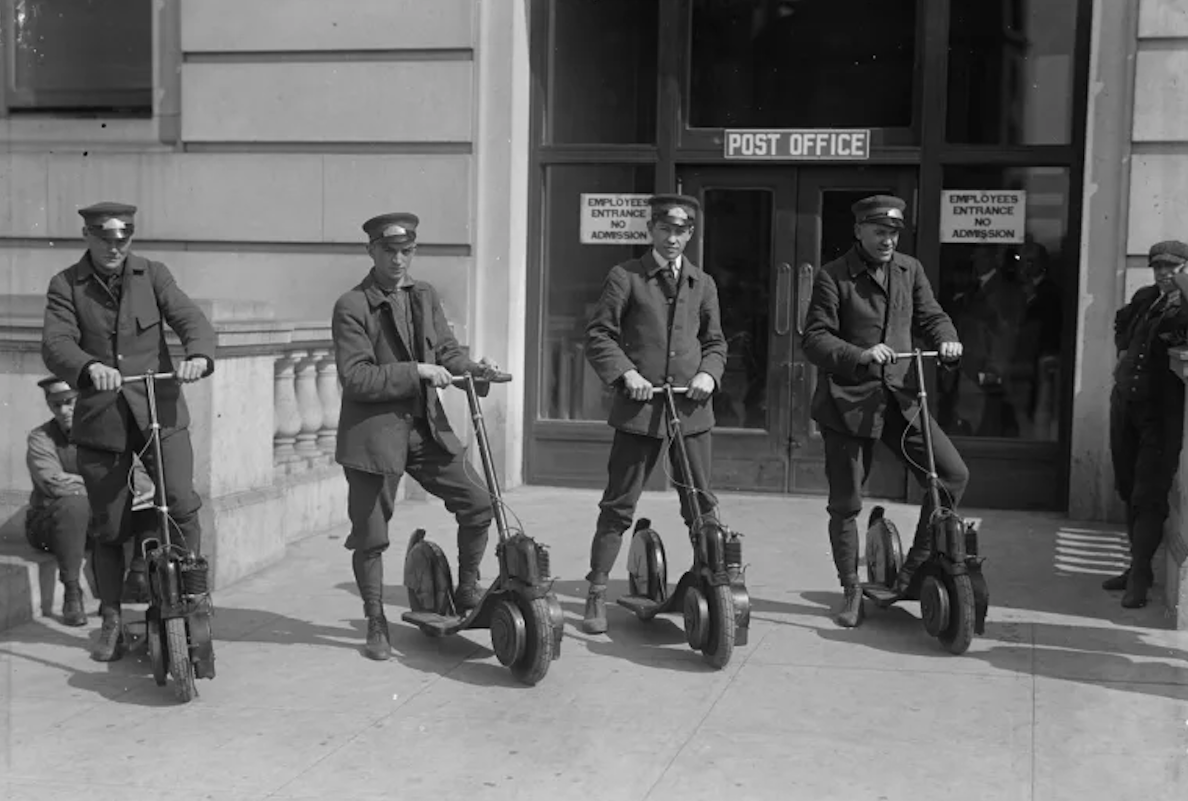 More than 100 years ago, there was a time when motorized scooters became a popular way to get around just before the automobile dominated our streets. The U.S. Postal Service tested them around 1911 and popularity spiked in 1916. These scooters were gas powered, relatively expensive, but were practical in many places. Today, motorbikes are the most effective way to travel in many parts of the world.